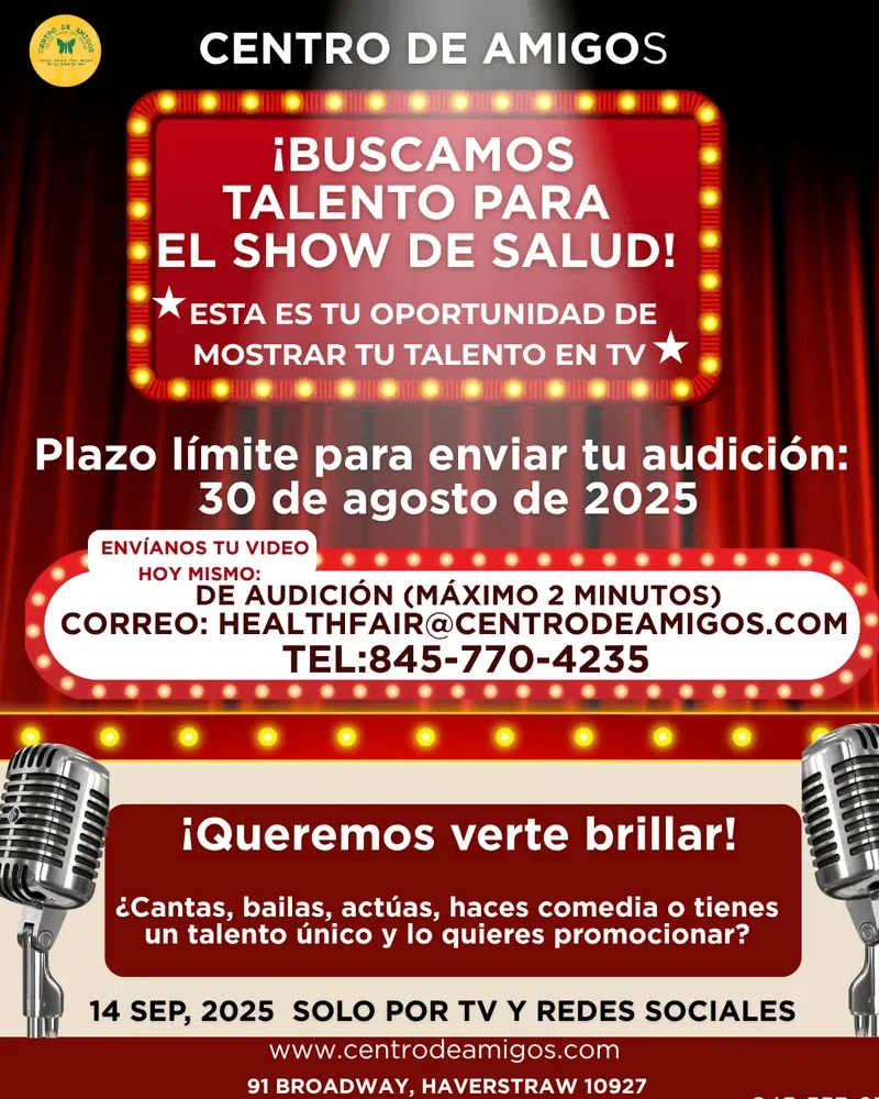 ¡Buscamos Talento Para El Show De Salud! Contactanos Hoy!